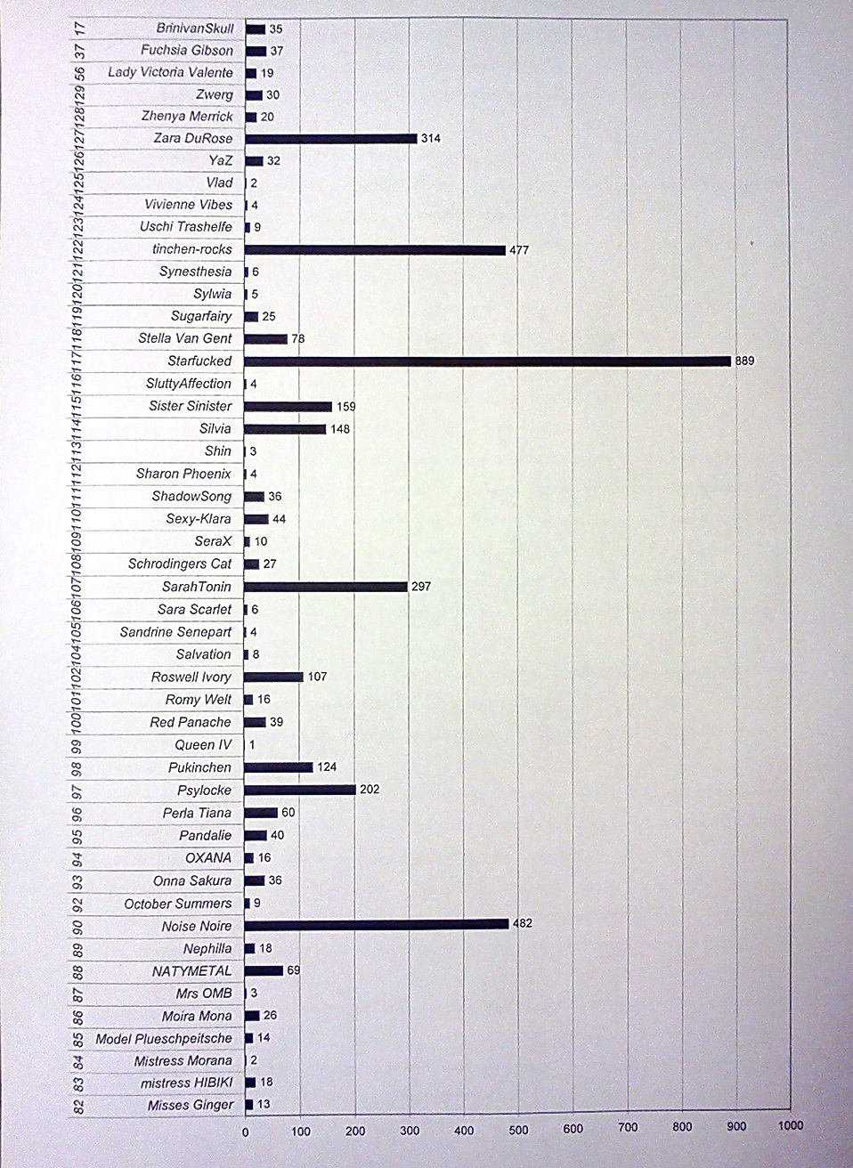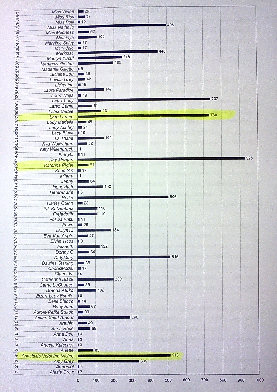 Я не знаю какая причина у этого обвала. Возможно у девчонки закончились деньги, накопленые на несъеденных школьных завтраках. А возможно сам Чернич посетил ея сайт, ужаснулся, и, вытерев пот со спины, попросил королевишну всея рускаго фетиша покинуть благородное собрание.