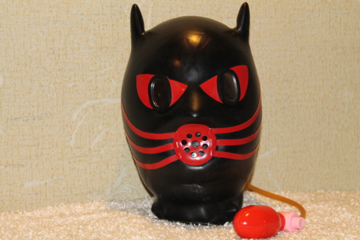 маска кошки надувная, глаза - прозрачная серебристая диафрагма, без молнии - вход через шею, цена 700 р. - вещь эксклюзивная, всего лишь одна модель удостоилась права съёмки в ней...