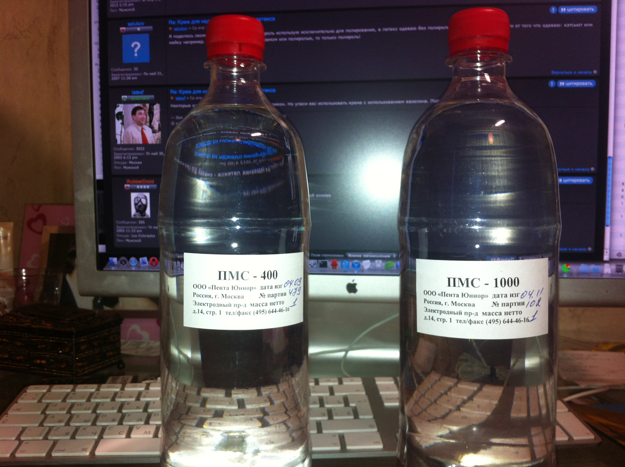 :))) ПМС-1000 использую только как полироль снаружи. Она охрененно держится на поверхности латекса и всё блЯстит очень долго без риска загадить окружающую обстановку силиконом. А заползать в костюмчик лучше с ПМСкой по жиже, типа 200-и даже