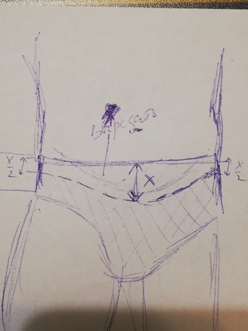 Ваш случай можно наверное реально отнести к курьёзам, потому что наша менеджер Аня испугалась Иксов, и тем более делённых на два, бросила пулемёт и бежала с поля боя. На самом деле запрос можно было описать простой фразой "сделать поясок у стрингов в два раза уже" Но эскиз в любом случае лучше и понятней (для тех, кто понимает в иксах))))))))