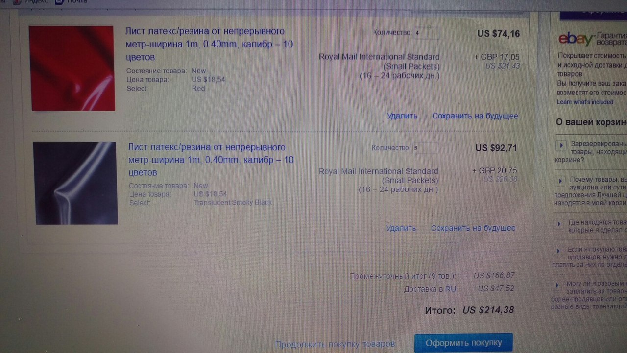 Itim писал(а):На ибее делаем поиск: latex sheetKoledgo писал(а): Ни в коем случае! В мыслях даже не было неуважительно относиться к человеку,который откликнулся на мой вопрос! Я просто на али точно видел 1х2 с доставкой в районе 7тыс. Насчет ибея не смог найти,так-как при указании места проживания Россия,поиск по латексу почему-то не дает результатов(