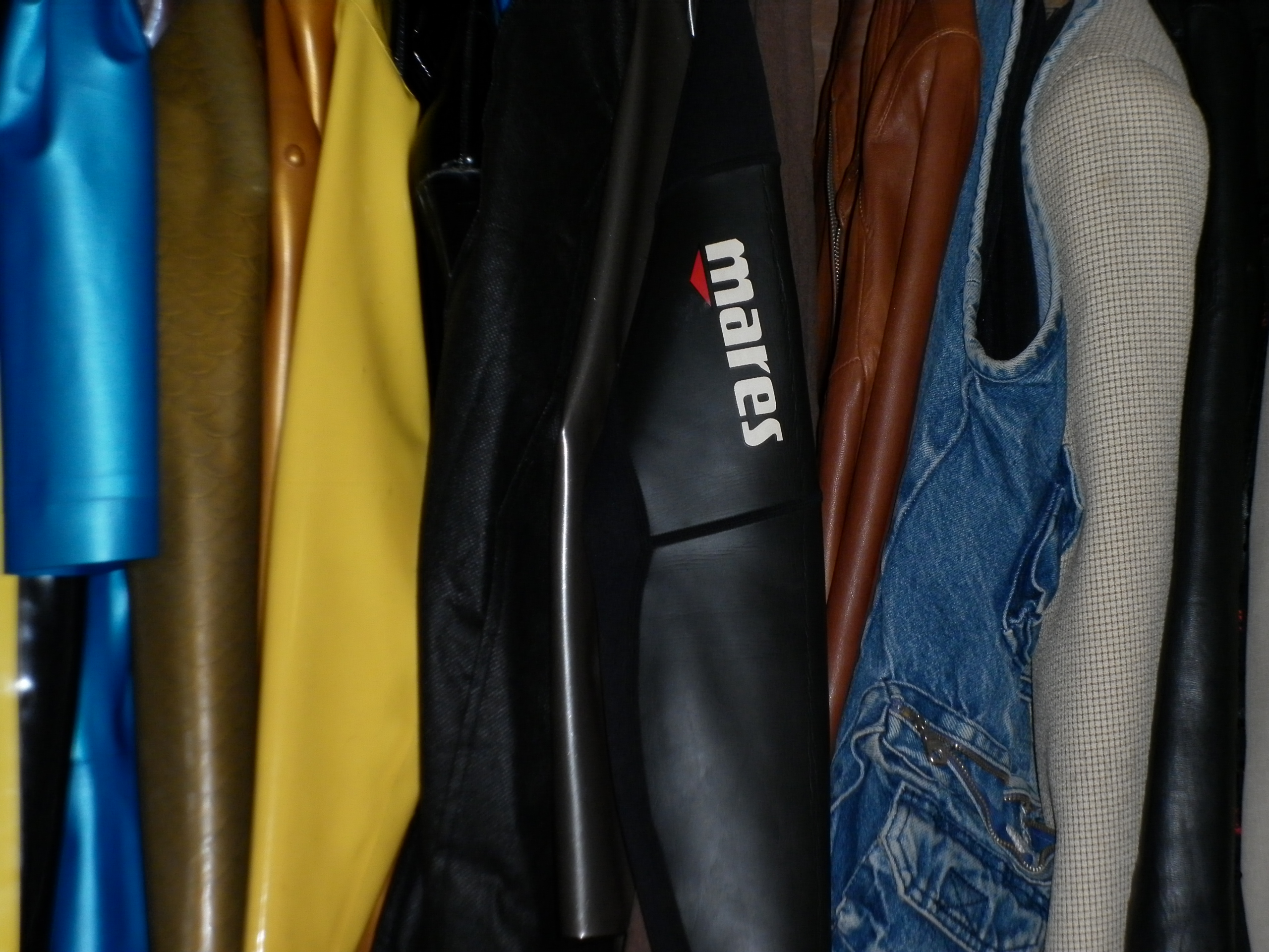 Да, висит ещё неопреновый гидрокостюм, отделяющий латекс от нормальной одежды