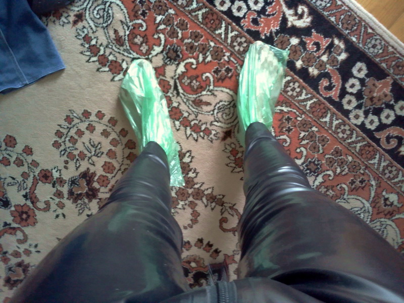 Для надевания латексного кс без приклееных перчаток и носков можно использовать длинные пакеты для мусора