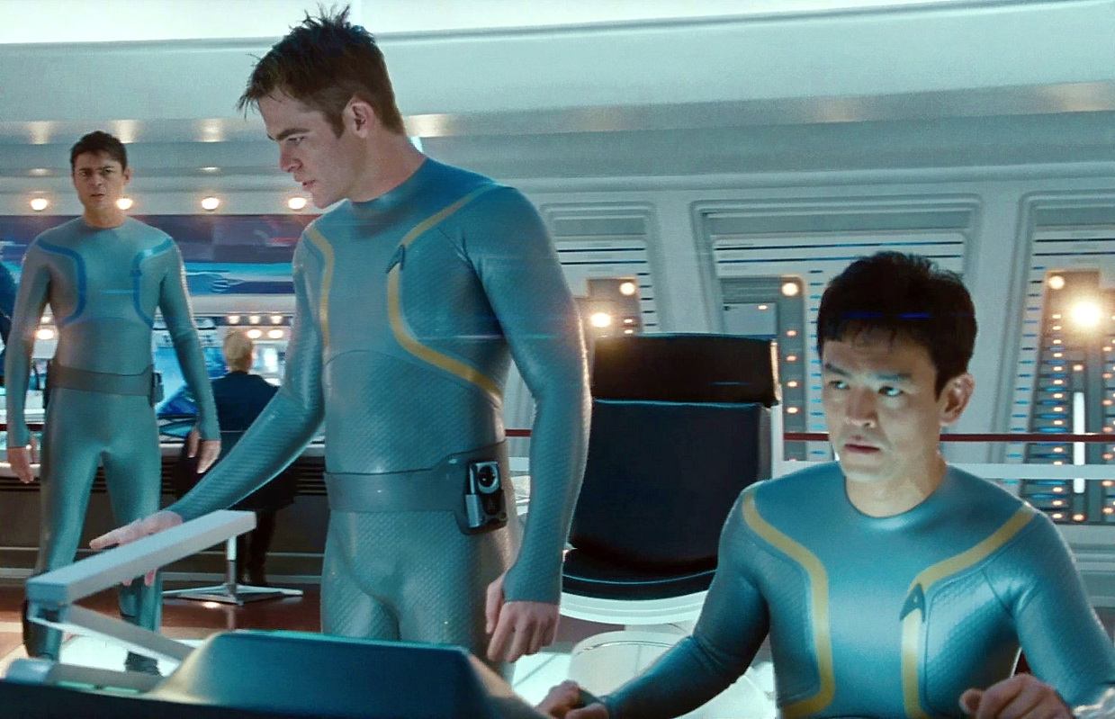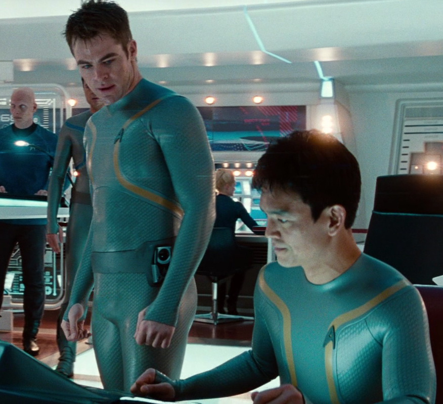 Шикарные неопреновые костюмчеги на героях команды космического корабля "Стар Трэк". Жаль, что не всю фильму они в этих костюмчеках щеголяли