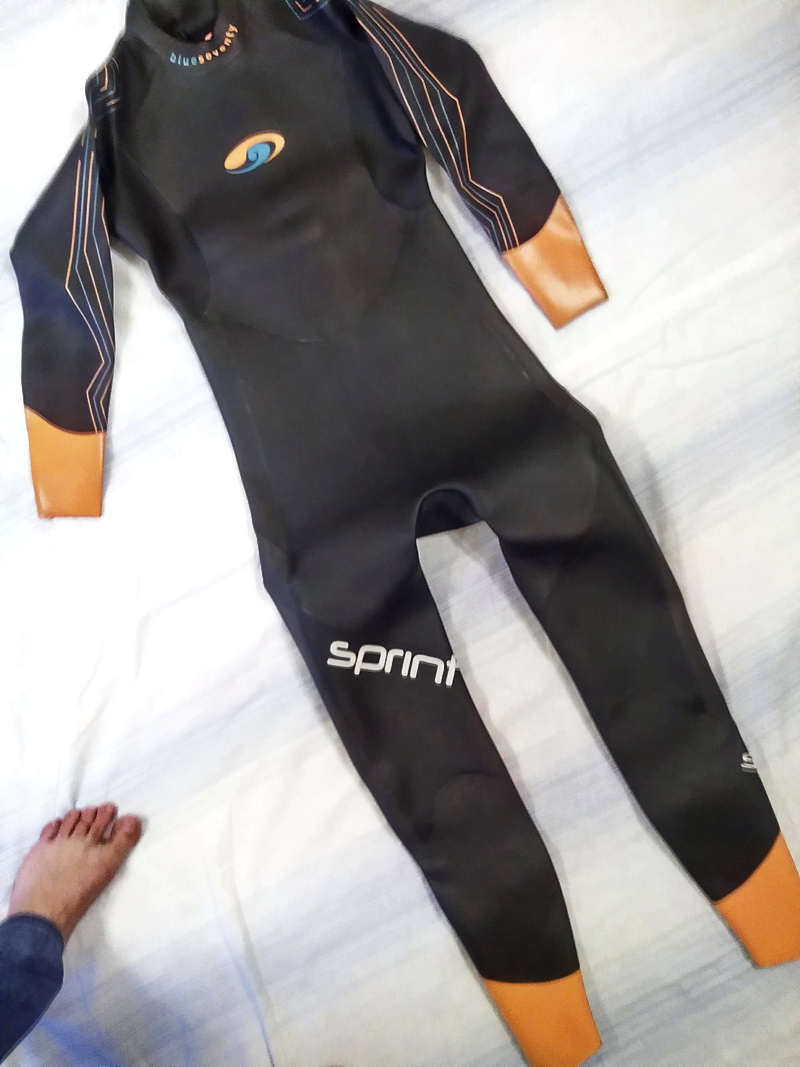 Одевается неопреновый кс для триатлона гораздо труднее чем простой кс для дайвинга. Вот тут-то и пригодились нитяные перчатки и опыт надевания с целофановыми пакетами.