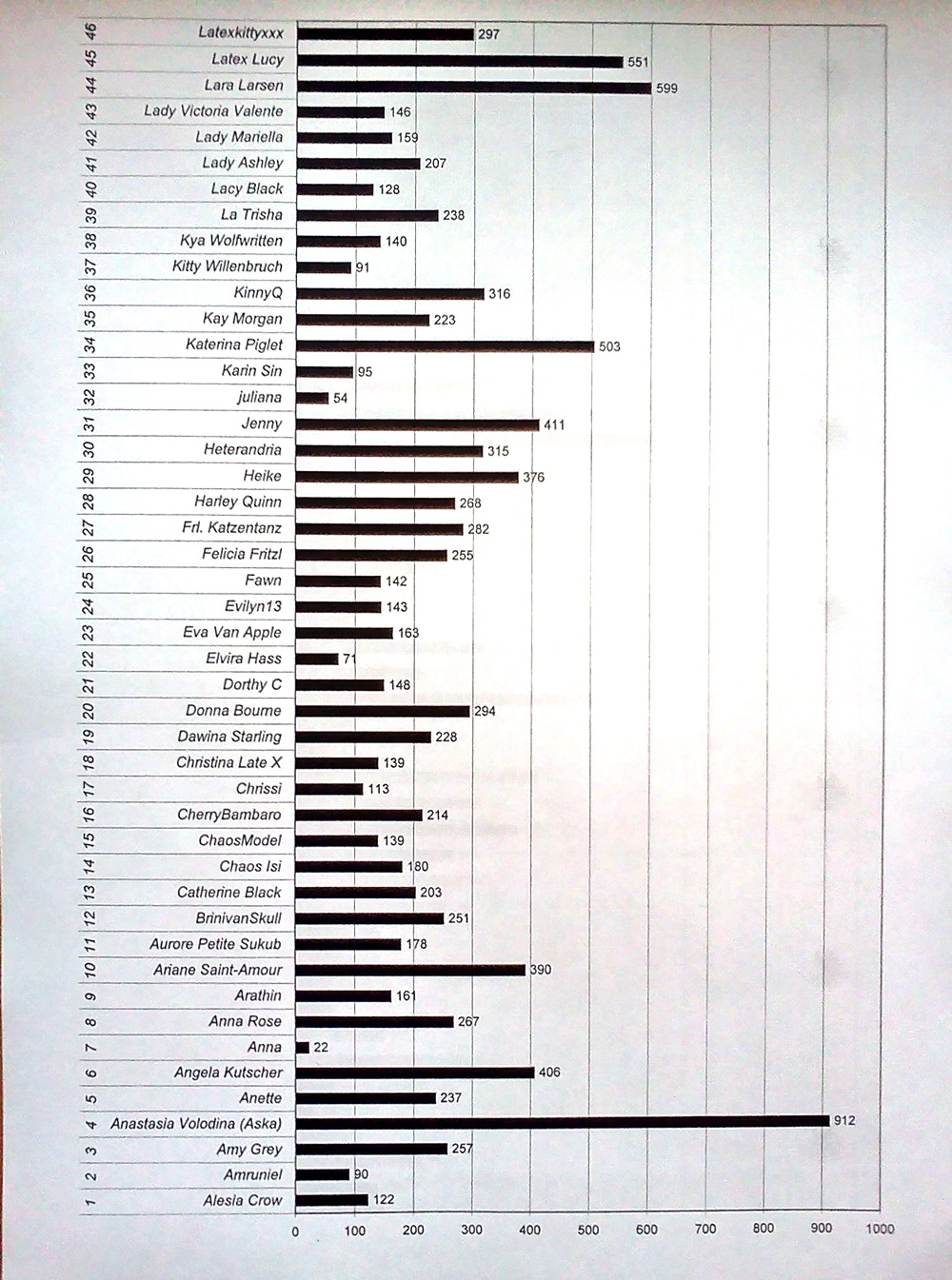 1. Эльвира появилась на конкурсе по своей воле, просто у нее комп сломан и пришлось регить ее мне. Сегодня будем вместе редактировать её вес и рост и сочинять новую смешную историю о том, как она жить не может без латекса )))